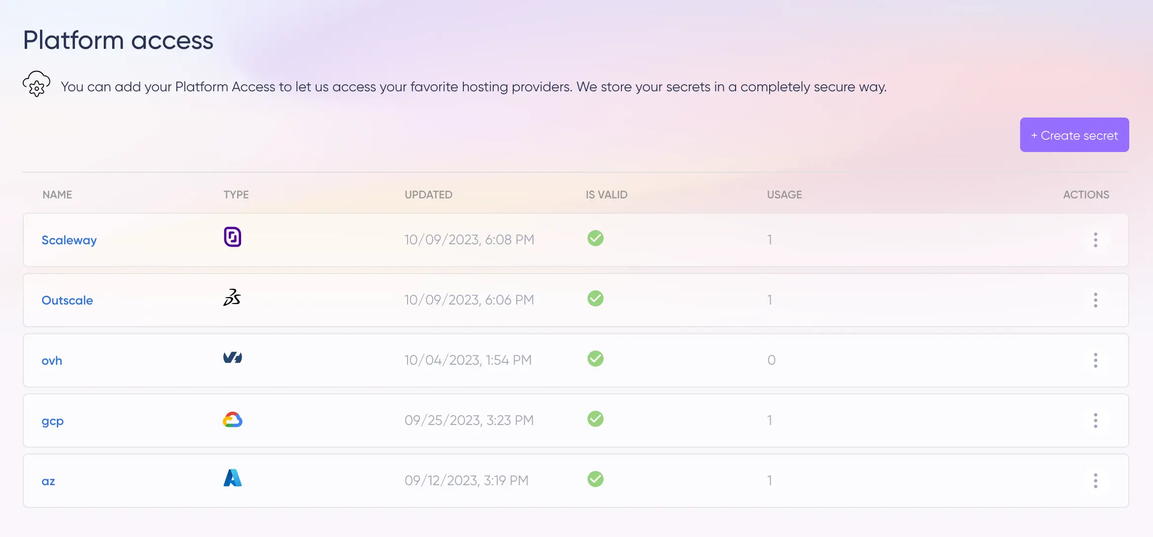 Everything is deployed to your accounts, so you retain full control and remain your provider's administrator. Benefit from your cloud credits.